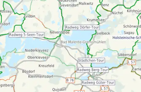 Under "routes" you find switchable cycle routes and logged bike trail signage for local, regional, national and international routes.